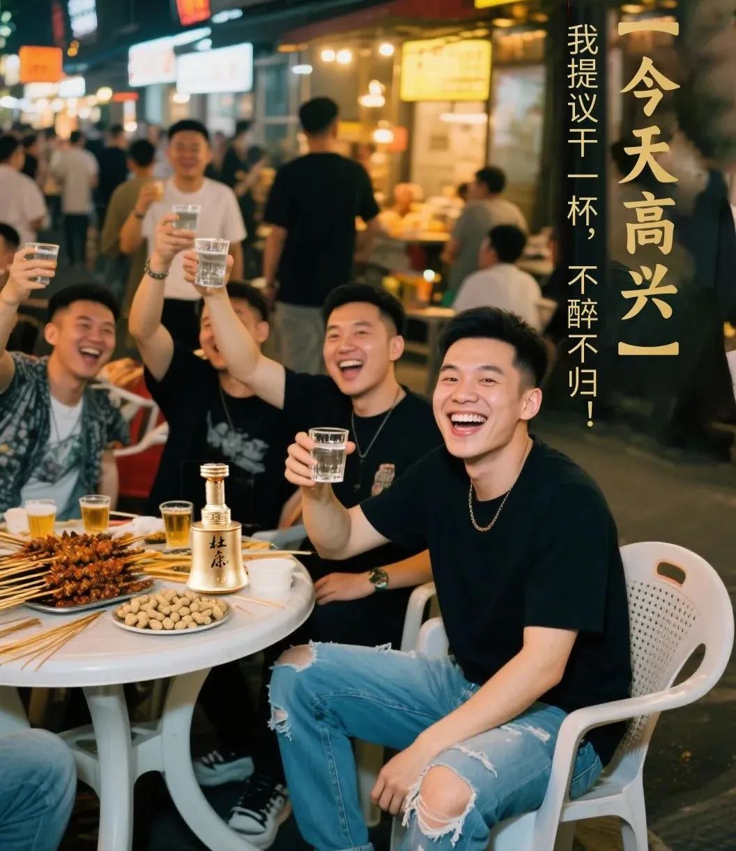 夜市大排档里,食客们虽汗流浃背,仍举杯畅饮手中的洛阳杜康酒。酒盛在冰凉玻璃杯,清莹酒液夹着冰晶,在霓虹灯下闪烁光芒。