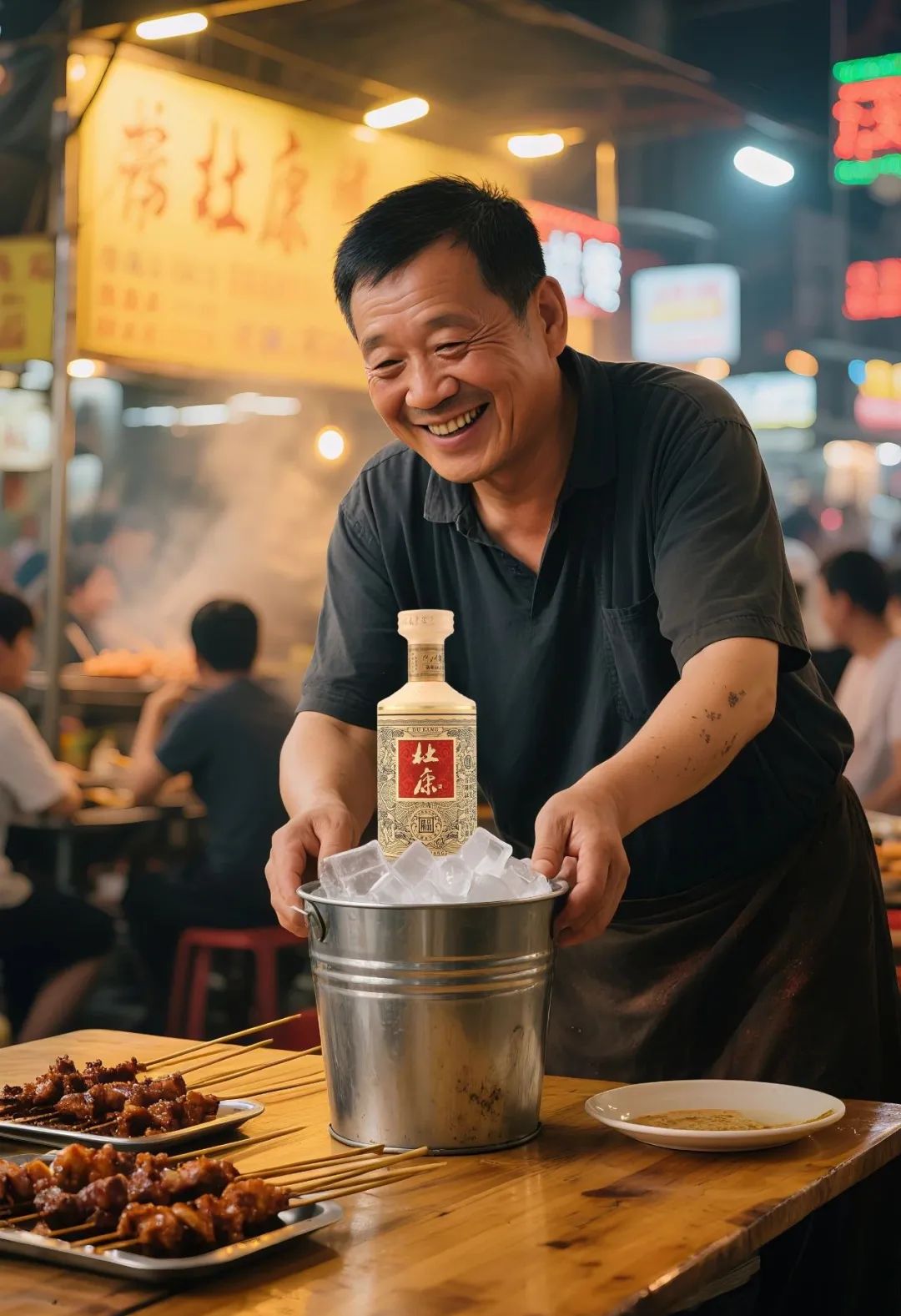 夜市大排档里,食客们虽汗流浃背,仍举杯畅饮手中的洛阳杜康酒。酒盛在冰凉玻璃杯,清莹酒液夹着冰晶,在霓虹灯下闪烁光芒。